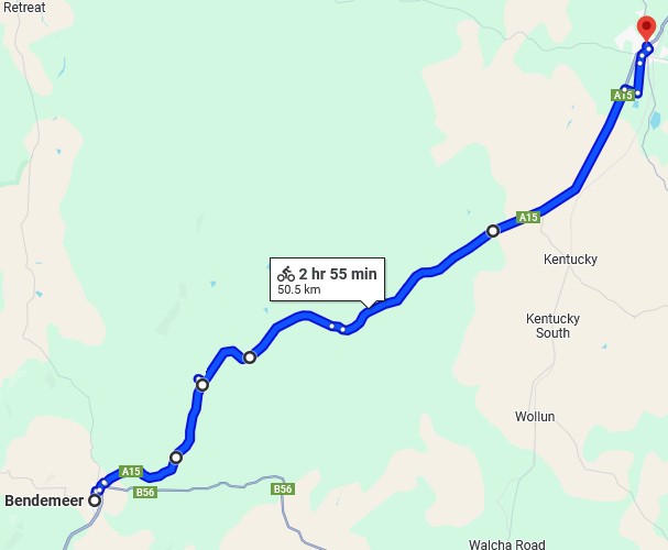 The day was cool and a little overcast as I pushed my somewhat-reduced load away from the Bendemeer Hotel at 11 am. The hill coming out of town and in the initial few kilometres on the highway might have been the worst of the day – especially with cold legs.